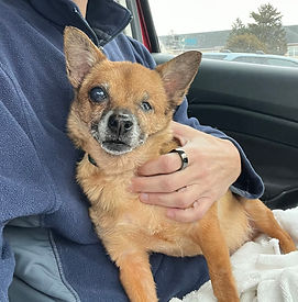 Meet Maya! This girl flew to us all the way from California to start her new life. Maya is an elderly Chihuahua who has end stage hind leg arthritis and struggles to walk. She also has severe GI disease and sees an internist to ensure she can stay comfortable! She is mostly blind, but that doesn't stand in her way at all. Maya is a delicately balanced little girl but she is living her best life and is the sweetest, happiest little dog around.